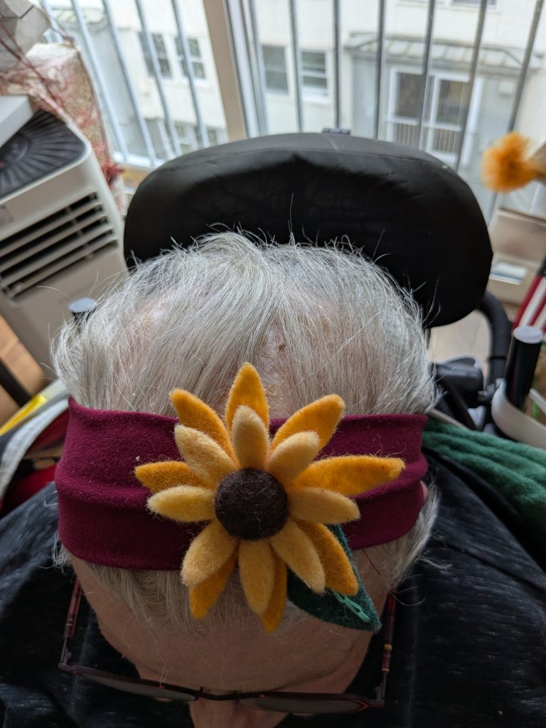 Comb-back flies in wind? Charlie ordered the headband. I found the flower.